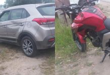 Motociclista fica ferido após colidir em lateral de carro que parou em local proibido...