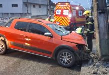 VÍDEO - Motorista fica ferido após colidir caminhonete contra poste em Brusque