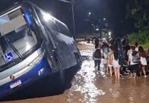 VÍDEO - Passageiros ficam feridos após ônibus sair da pista por alagamento em Itajaí